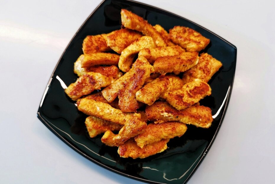 ИНГРЕДИЕНТЫ на 4 порции 600 г Грудки индейки 2 чайные ложки Уцхо-сунели 2 чайные ложки Шафран 2 чайные ложки Молотого перца чили по вкусу Морская соль 4 столовые ложки Оливкового масла 2 столовые ложки Горчичного масла 1 Индейку нарезать тонкой соломкой. 2 Поместить в глубокую емкость и добавить уцхо-сунели. 3 Добавить шафран. 4 Посолить. 5 Приправить молотым чили. 6 Заправить оливковым маслом. 7 Добавить горчичное масло. 8 Тщательно перемешать. 9 Обжаривать на сухой раскаленной сковороде, периодически переворачивая, в течение 7–10 минут. 10 Переложить на блюдо, дать немного остыть и подавать.