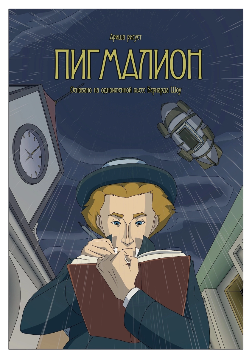 Изначально Пигмалион - герой древнегреческого мифа о художнике, влюбившемся в созданную им статую. Позже появился второй «Пигмалион» - пьеса Бернарда Шоу, где тоже был своего рода «скульптор» и в каком-то смысле его «творение». Мой же «Пигмалион» вдохновляется и основывается именно на пьесе Бернарда Шоу, но переносит ее в мир стимпанка. Профессор фонетики становится гениальным механиком, а цветочница… Об этом вы узнаете из комикса Спасибо за то, что дочитали комикс до конца, надеюсь, он вам понравился! Свои впечатление вы можете писать в комментариях, а еще больше комиксов можно найти в моем профиле. В качестве заключения хочу еще раз вспомнить пьесу, на сюжете которой основан мой комикс. Ее героями также являются профессор Генри Хиггинс, полковник Пикеринг и прекрасная Элиза. Я очень советую, если не сходить на нее в театр, то хотя бы посмотреть фильм по пьесе. От себя могу рекомендовать черно-белый фильм 1938 года с одноименным названием. Но, если вы испугались отсутствия цветов и бо