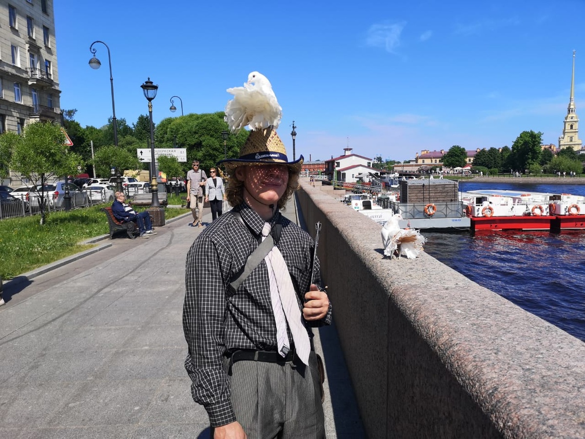 Коля А (нынешний, настоящий) стоит и рисует под своим огромным собранным - сшитым из разных лоскутков зонтом. Мимо идут девушки и парни . Мужчины и женщины, мамы и папы с детьми. Коля ярок, колоритен привлекает внимание. Его шляпа необычна. Его рост, борода, выражение лица. Его потертый будто 40-й давности пиджак. Так привлекательны клоуны со связкой разноцветных шаров. Даже сейчас он по-своему привлекателен для зевак, но при этом стесняется своей привлекательности, но ведь то же самое можно было делать совсем на другом уровне и за другие деньги.
