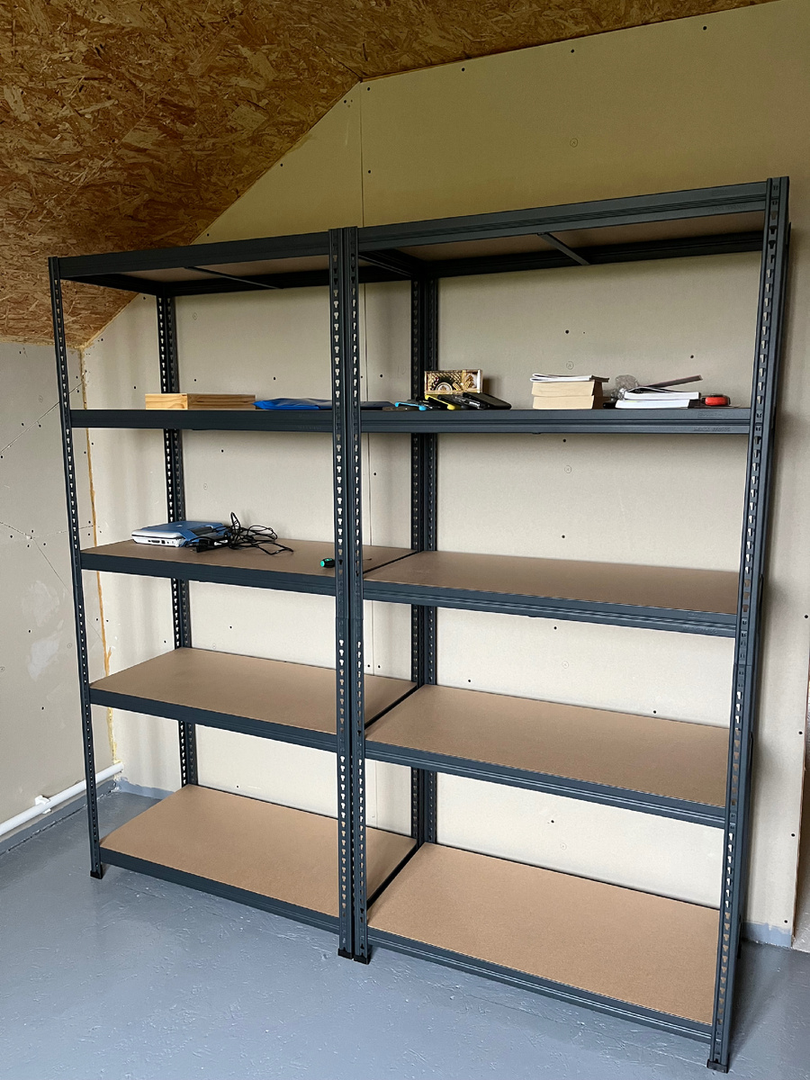 Также обустраиваем на 2 этаже наши личные кабинеты с мужем. Заказали на WB полки, быстрая сборка, очень вместительные и смотрятся очень даже стильно. 😎 А также выдерживают вес аж до 170 кг!💪