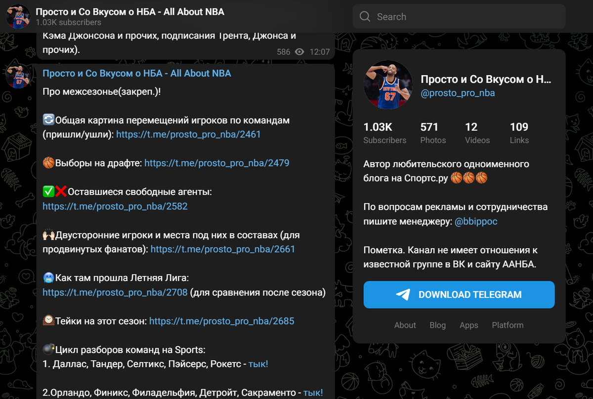 Не подумайте, пост сделан не с целью рекламы, а из личного интереса, просто на Спортсе удается писать не так насыщенно, а в Телеграме – постоянно. А самым интересным является закрепленный пост, в котором отмечаются все выборы, обмены, активы и прочее для каждого клуба.