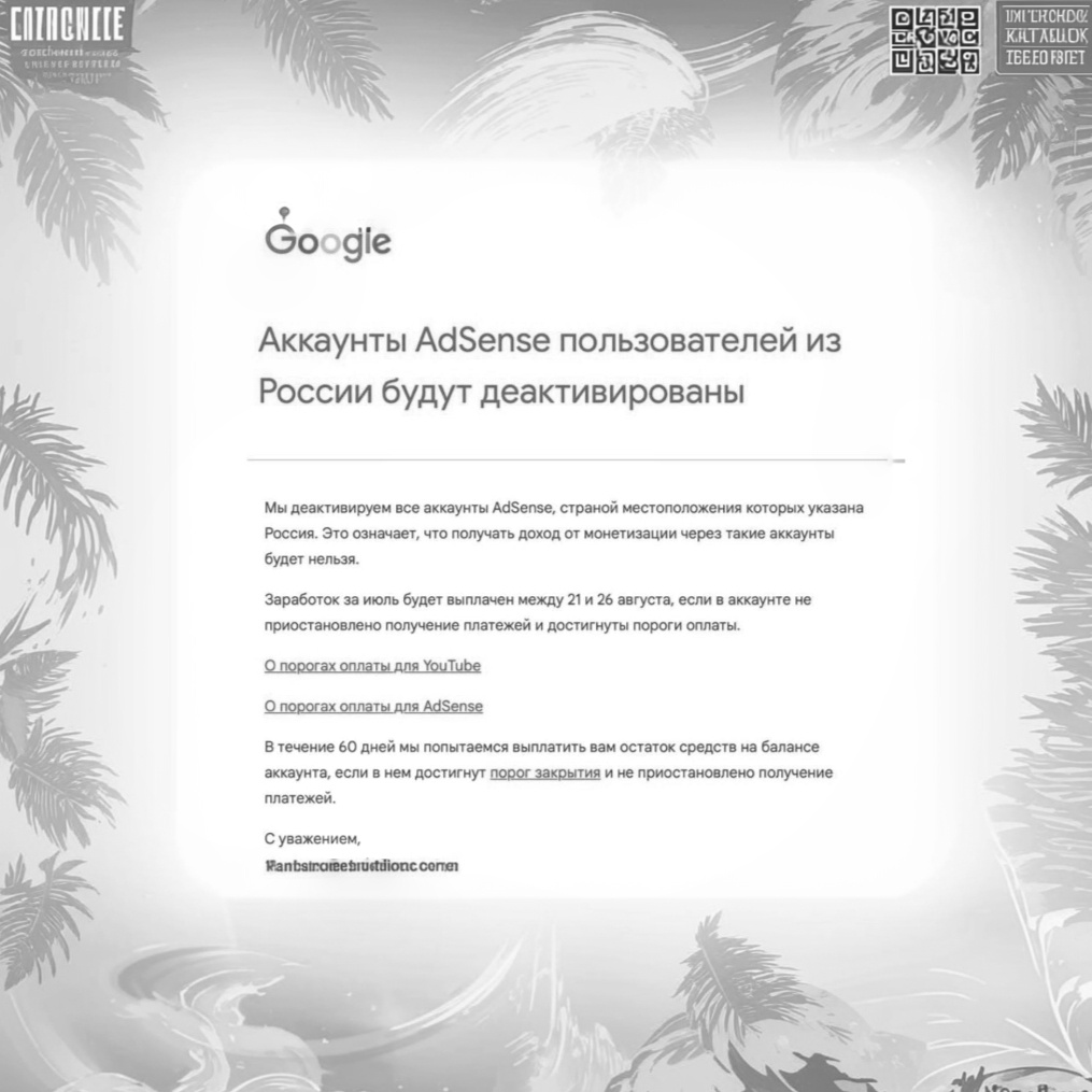 В результате, даже те, кто сохранял доходы через просмотры контента пользователями из-за границы, потеряли эту возможность. В уведомлении от Google говорится, что аккаунты AdSense с местоположением в России будут деактивированы, и последние выплаты будут произведены до 26 августа 2024 года, при условии, что сумма на счете превышает $100.