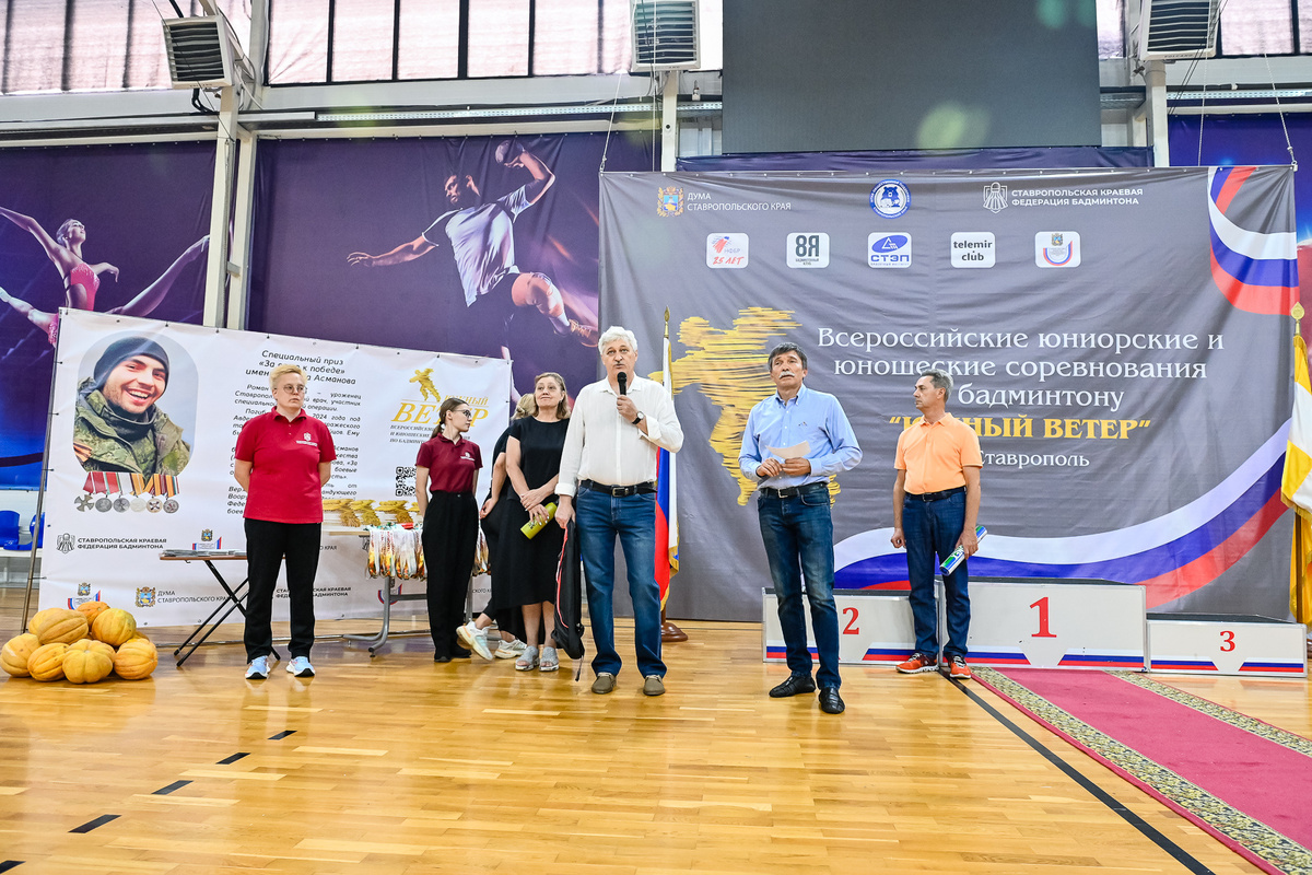 Всероссийские юниорские и юношеские соревнования «Южный ветер» Соревнования среди мальчиков и девочек до 11 лет «Южный ветер» г. Ставрополь, 6-11 августа 2024 г. ФОТОГАЛЕРЕЯ https://vk.com/album-89858131_303945332 ТРАНСЛЯЦИИ https://vk.com/video/playlist/-89858131_121 РЕЗУЛЬТАТЫ http://www.badm.ru/news/badminton/4761 ИНФОРМАЦИЯ ОБ ОТКРЫТИИ https://www.dumask.ru/info/smipublic/sobytiya/item/32641-v-stavropole-startoval-vserossijskij-yuniorskij-i-yunosheskij-turnir-po-badmintonu-yuzhnyj-veter.html ИНФОРМАЦИЯ О ИТОГАХ https://www.dumask.ru/info/smipublic/sobytiya/item/32664-itogi-vserossijskogo-yuniorskogo-i-yunosheskogo-turnira-po-badmintonu-yuzhnyj-veter-podvedeny.html