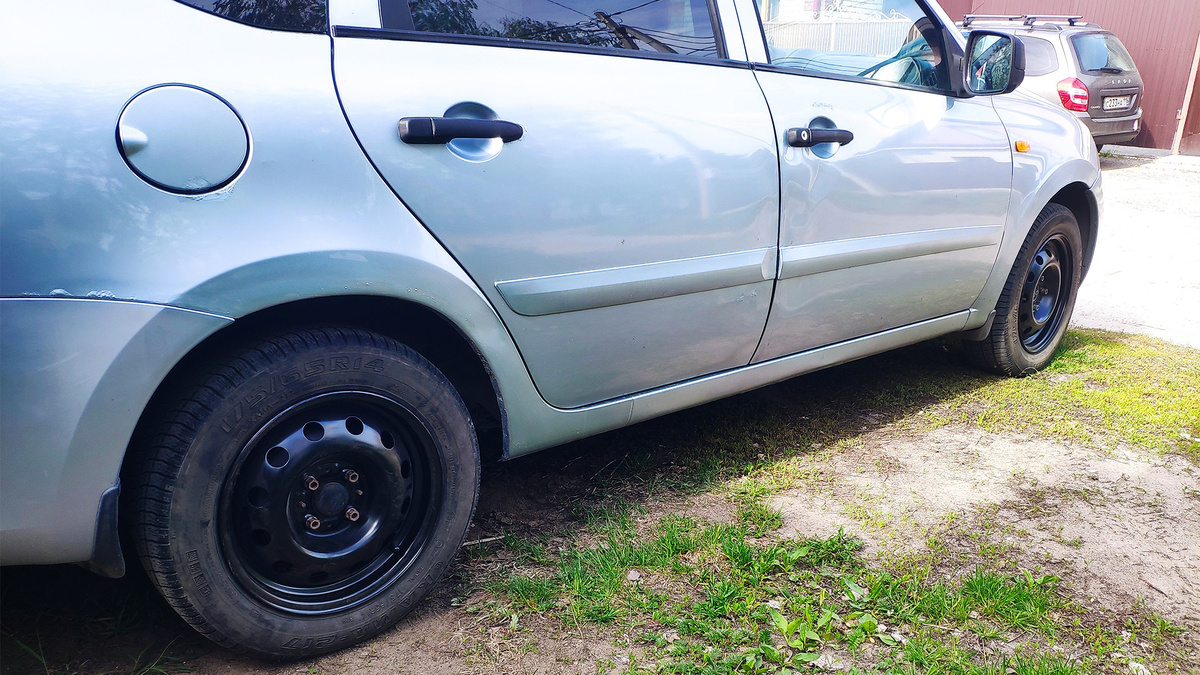 Сегодня решил съездить в гараж и забрать новые штампы R14 и шины. В том году покупал их для семёрки. Так и не поставил. А то когда купил Гранту смотрю на зиме стоит, думаю, ну норм сезон один откатать можно будет. Колёса собрали отбалансировали. Всё хорошо, кроме одного баллона. Он немного кривой и желательно поменять на малой скорости немного подкидывает.