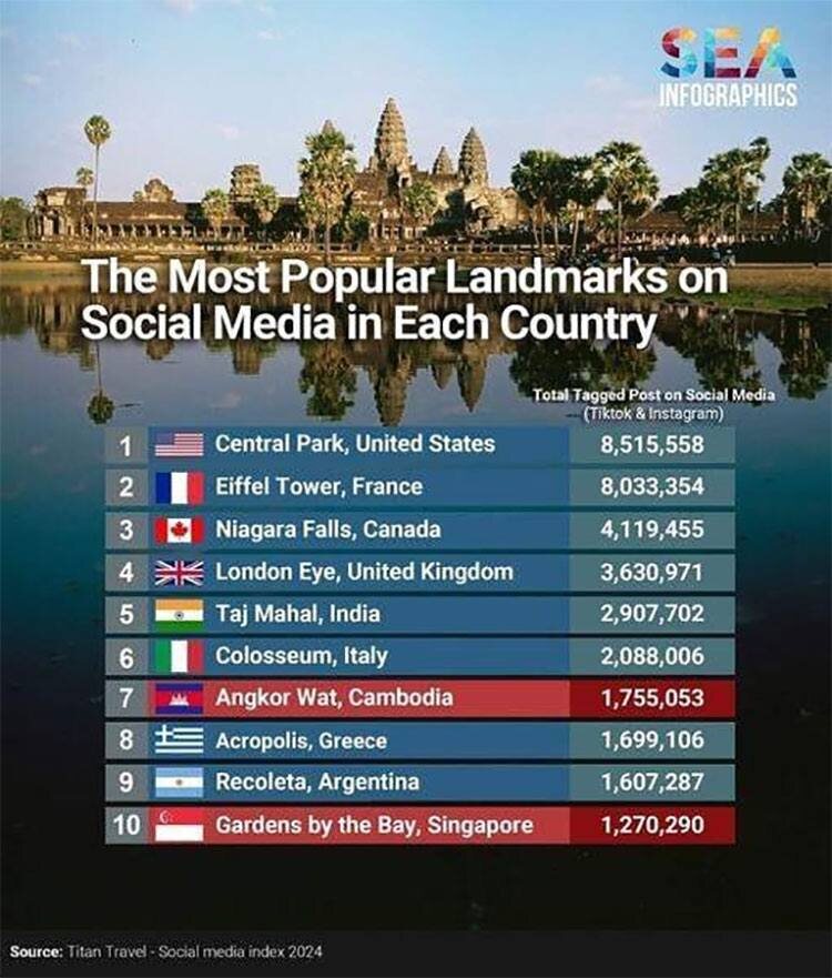 ➡️ Ангкор-Ват — 7-я по количеству тегов достопримечательность в социальных сетях мира