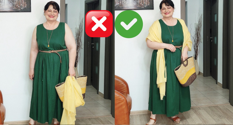 Возьмем пример дамы Плюс Сайз, которая носит очень простую одежду и классно ее сочетает по цветам, что создает эффект свежести, ухоженности и лоска.