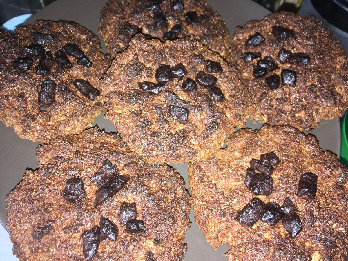 Протеиновое печенье 🍪Рецепт: -протеин шоколадный 60 гр.; - клетчатка 35 гр. ; - овсяные хлопья 15 гр.; - молоко 100 гр. ; - сода/разрыхлитель на кончике ножа; -арахисовая паста 25 гр.; - сахарозаменитель (фитпарад) 10 пакетиков; Все ингредиенты смешать и сформировать шарики, слегка придавив их и по желанию украсив горьким шоколадом. Выпекать 15 минут при 190 градусах. Получилось 6 штук. Примерное БЖУ и калорийность одного печенья без учета шоколадной крошки: 85 кк 9/3,5/4,5. Всем приятного аппетита 😋