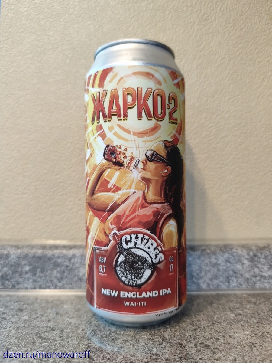 Хотя и не так, как было пару недель назад. Но речь не о погоде, а о пиве под названием "Жарко 2", которое сварила пивоварня Chibis Brewery. Первый вариант этой жары появился в прошлом году и представлял из себя монохопный мутняк на хмеле Citra. Вторая же версия дебютировала в июне нынешнего года и тоже является монохопным NEIPA, но на сей раз на новозеландском хмеле Wai-Iti. И это весьма интересно, поскольку до сегодняшнего дня мне этот хмель попадался только в компании с другими сортами. А тут можно будет заценить его персональную органолептику. На момент дегустации пиву было полтора месяца. Срок годности составляет 365 суток при хранении в холодильнике. Описания нет, так что приступаем к пробам. ТТХ: Пиво бледно-желтое, мутное, непрозрачное. Пены очень много, стойкость средняя. В аромате яркие цитрусы, среди которых выделяется лайм, немного персиков и пряностей. Вкус фруктовый, чуть сладковатый. Послевкусие фруктовое, с небольшой вяжущей травянистой горчинкой. Алкоголь в органолептик