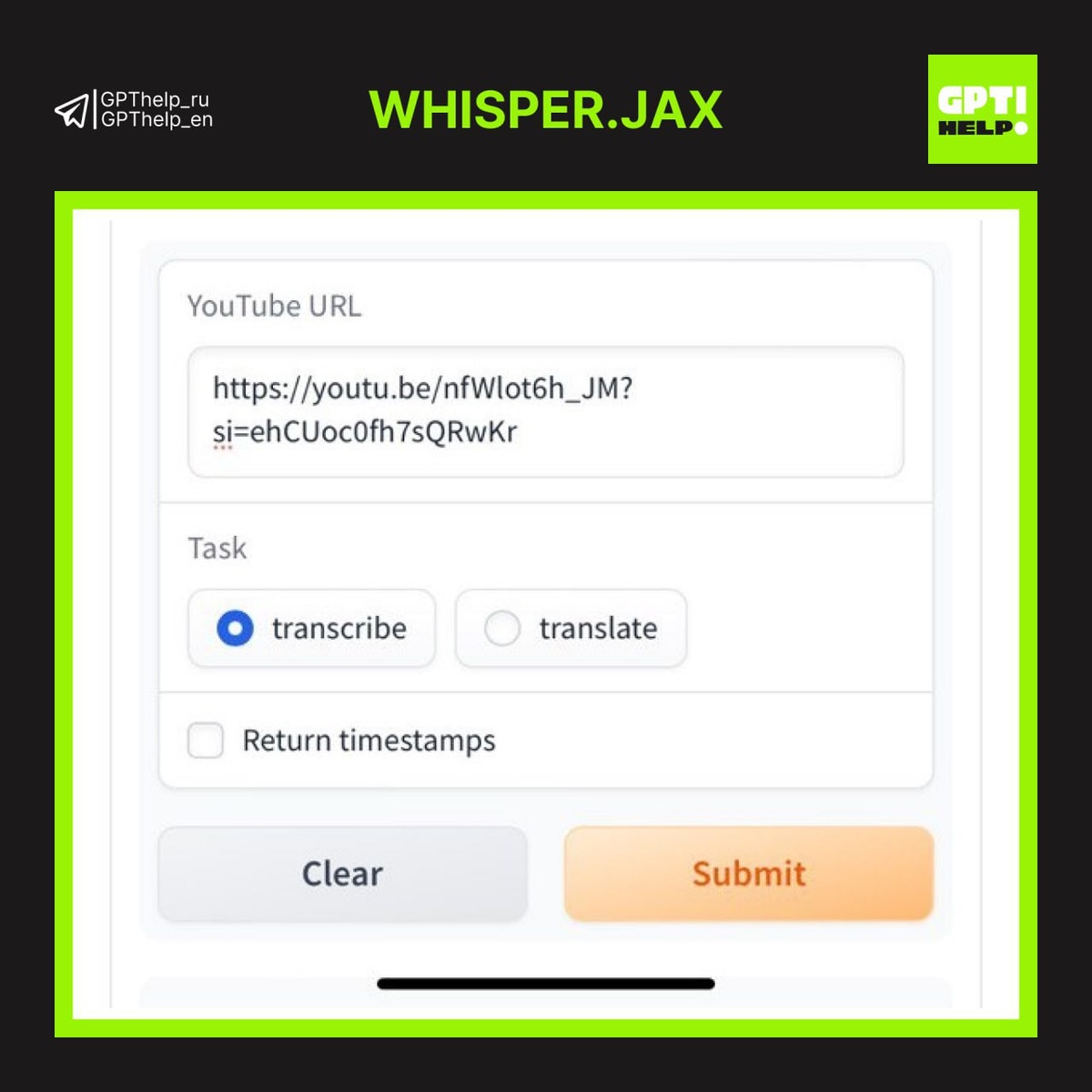 Спасение студентам, участникам деловых встреч и админу, который не любит голосовые сообщения. Этот ИИ-помощник бесплатно преобразует видео/аудио в текст! 💬Уровень сложности: поцеловать котёнка в носик 👀Транскрибируем тут:Whisper JAX Плюшки сервиса: запись голоса через микрофон, добавление ссылок с YouTube, перевод с иностранного. Больше не придется слушать записи с колыбельными от препода или босса. ⏺В карточки закинули расшифровку песни. Угадайте исполнителя по тексту! Делитесь мнением, штука полезная для вас?
