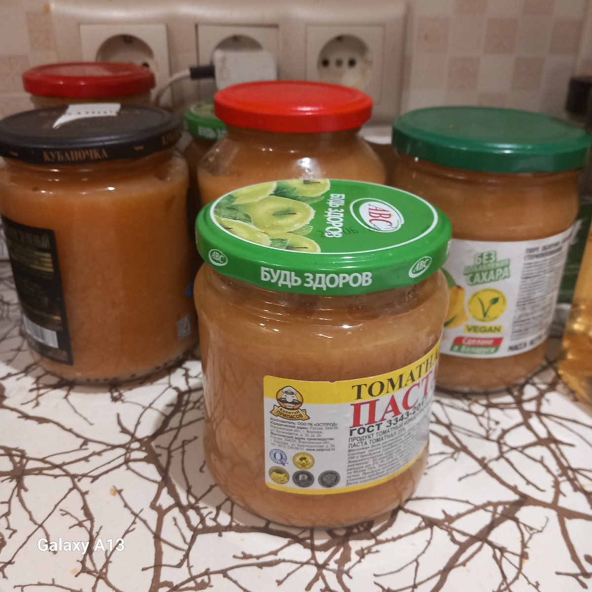 Борьба с урожаем продолжается. Сегодня победу удалось одержать только над кабачками и яблоками. Огурцы держат оборону, но враг будет разбит! Начну по порядку. Яблоки. Своих пока нет, поделилась мама. И свежими, и "полуфабрикатными". Полуфабрикат - это пюре из сырых яблок. Дети почему-то не очень любят такое, хотя, как по мне, оно очень вкусное. Я делаю пюре из проваренных яблок, которое всей моей семье нравится очень: На килограмм порезанных яблок (без сердцевинок, но с кожурой) беру стакан песка и полстакана воды. Ставлю на огонь и тушу при помешивании. Когда яблоки станут мягкими, пробиваю все погружным блендером и горячим раскладываю в подготовленные банки. А мамин "полуфабрикат" я просто потушила, добавив немного сахара, и получилось то же самое. Дальше на очереди - огурцы. На даче не были неделю, поэтому переростков очень много. Сегодня делаю огурцы по-грузински. Рецепт писала здесь. Закрутила шесть баночек. Теперь кабачки. Самое трудоемкое. Сначала заморозка - часть колечками, ча