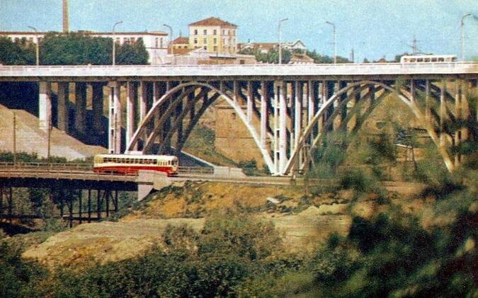 Вот — снова старый Астраханский мост, снова МТВ-82. Наверху видны современные здания — обкомовская больница (Обл. больница №3, сейчас в этом здании поликлиника), Циолковского, 2 (крайняя правая пятиэтажка) и Циолковского, 1а (пятиэтажка левее). Крайнее здание слева наверху — это Пугачёвская, 1, (Государственный научно-исследовательский институт озерного и речного рыбного хозяйства, в народе — «Рыбный институт»). А вот внизу, под этим институтом — ещё один дом, как вижно по фото — восстановленный. Кажется, там — ещё дома, рядом с ним. Этих домов сейчас нет, скорее всего они просто засыпаны.
