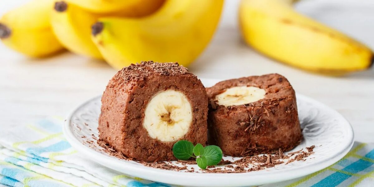 - распределить шоколадно-творожную массу на пищевой плёнке, сверху положить нарезанный кружочками банан, сформировать «колбаску» и убрать в холодильник на 20 минут;