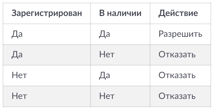 - Действие: разрешить покупку/отказать