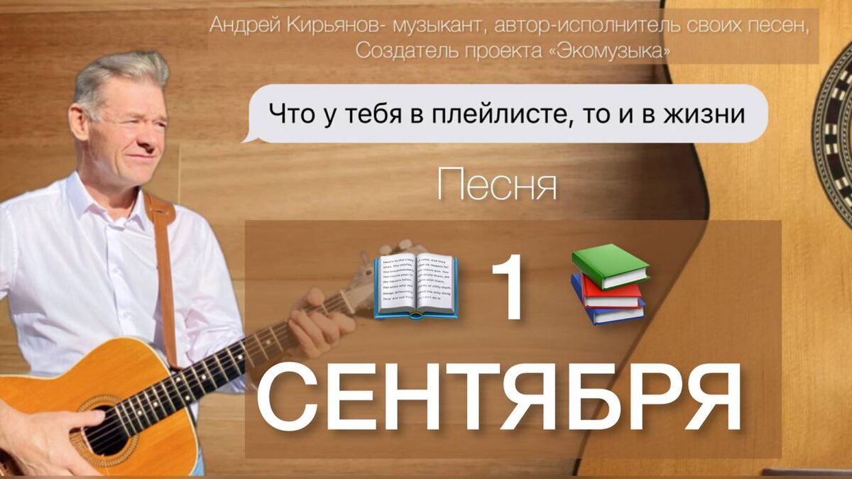 «1 сентября» (D) Первое (Hm) сентября! (Em) Лето (A) прощай! 1 куплет (Hm) В жизни (G) бывают (D) разные (A) дни. (Hm) Не (G) забывай их (D) благодарить. (A) (Em) Нужно на полную (D) жить, чтобы больше (A) узнать. (G) Новой страницею, (D) видимо, будет (A) опять. Припев (D) Первое (Hm) сентября! (Em) Лето (A) прощай! (D) Где-то в (Hm) календарях (Em) спрятался (A) май. (Em) А учебный (A) год, (D) как домашний (Hm) кот, (Em) Каждый божий (Gb) день меня (Hm) ждет! (H) Ждёёёт! (Em) А учебный (A) год, (D) как домашний (Hm) кот (Em) Каждый божий (Gb) день меня (Hm) ждет! (A) 2 куплет Много на свете разных дорог, Мы снова, как дети, на первый урок. Снова откроем все окна, учение - свет!!! Снова подарим Учителю-Жизни букет! Припев 1 раз В жизни бывают разные дни, Не забывай их благодарить... Дата создания: 23.08.2022 Мой ТГ канал: Терапия Экомузыкой. Слушай сердцем. https://t.me/terapiya_ecomusic