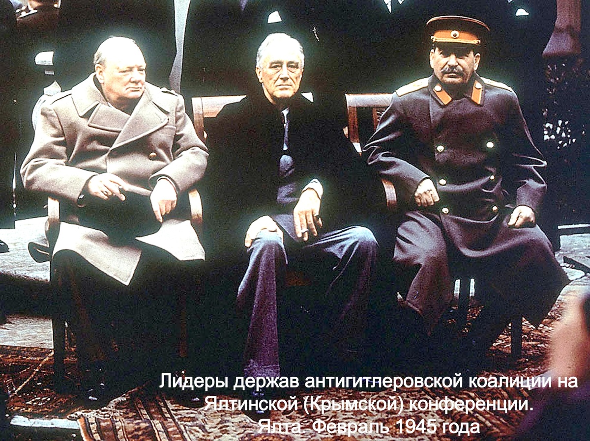 Предвидя капитуляцию Третьего рейха, Великобритания, США и Советский Союз разрабатывали планы послевоенного управления Германией. В ходе войны состоялось несколько встреч в верхах, кульминационной стала Крымская (Ялтинская) конференция (4–11 февраля 1945), в которой участвовали президент США Франклин Д. Рузвельт, премьер-министр Великобритании У. Черчилль и советский лидер И.В. Сталин в сопровождении министров иностранных дел и военачальников.