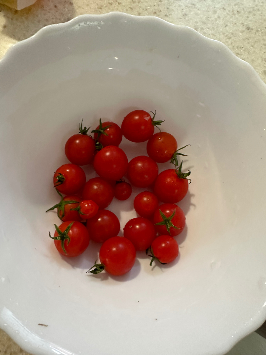 Но вкусные, однако, потому как свои! Я не огородник, и даже не учусь. Просто смотрю на новый урожай помидоров, нет, правильнее помидорчиков. Мини черри В ладонь спокойно уместится пару десятков плодов Эдакая смородина по размеру Размером с ноготь и даже меньше. И это уже спелый помидорчик На фоне обычного помидора, мини черри, как лилипуты Минимализм, меньше некуда, только чуть на зубок попробовать Но вкусные, потому как свои. Уже не так обращаешь внимание на цвета. Желтые Черные, как совсем и не помидоры, как крупная смородина или голубика Полосатые, почти как арбузы на вид. Не знаю, есть ли смысл в таком разнообразии? Может так и лучше, когда большой выбор. Но я с детства привык, что помидор, это овощ красного цвета и нормального размера, а других тогда и не было (по крайней мере я не видел). В любом случае, полезно, питательно и вкусно! Всем здоровья и добра!