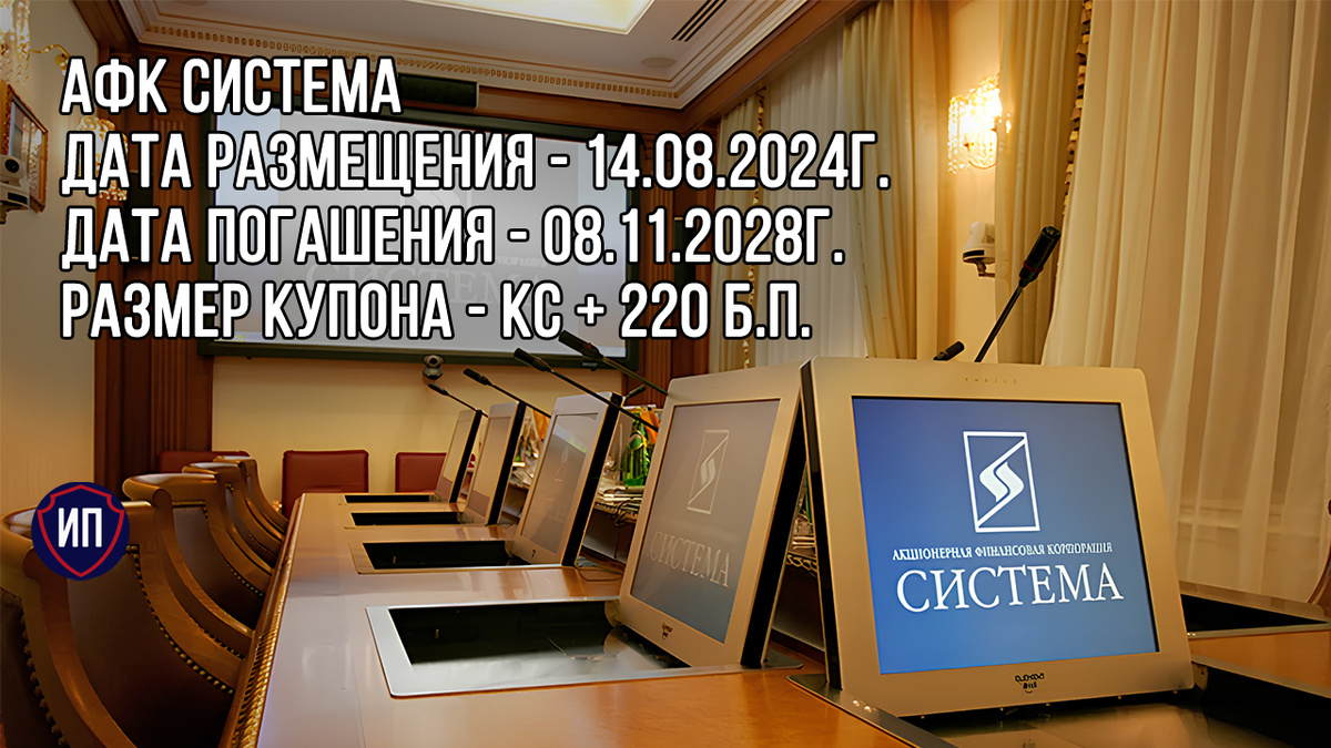 АФК Система - самая крупная инвестиционная компания России. В корпорацию входят МТС и МТС Банк, Сегежа, Ozon, Элемент, Медси, агрохолдинг Степь, Биннофарм Групп, Etalon Group и еще много разных компаний. Стоимость совокупных активов Системы превышает 1,75 трлн. рублей. Акции АФК Системы имеют первый уровень листинга Московской биржи, тикер бумаг AFKS. При этом компания входит в 12 различных индексов, в том числе в основной индекс Московской биржи (с удельным весом 0,73%). АФК Система ничего сама не производит, её основная задача - управление активами и денежными потоками внутри своей корпорации, но при этом она очень глубоко погружена в процессы заимствования на фондовом рынке. Компания идет в ногу с рынком, поэтому предлагает инвесторам облигации с плавающим купоном. 👀Что там по выпуску? 📌Дата размещения - 14.08.2024г. 📌Дата погашения - 08.11.2028г., среднесрочное размещение. 📌Объем размещения - 10 000 000 000 рублей со стандартным номиналом в 1 000 рублей. 💰Размер купона - плава