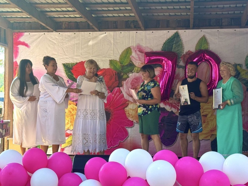 Одному из самых красивых поселений Иркутского района Сосновоборскому муниципальному образованию в минувшие выходные исполнилось 70 лет. Поздравить жителей с юбилеем приехали председатель комитета по финансам администрации Иркутского района Анна Зайкова и председатель районного Совета ветеранов Любовь Медведева, с творческими номерами выступили коллективы Дома культуры Ширяевского МО. В честь праздника звание «Почётный житель Сосновоборского МО» присвоено трём жителям муниципалитета: Александру Гавриловичу Колотыгину, Антонине Ивановне Меньшиковой и Юрию Валентиновичу Колодезникову. Все они живут в Сосновом Бору не один десяток лет и известны жителям своими трудовыми заслугами. Глава поселения Елена Фокина поздравила всех с праздником и вручила почетным гражданам удостоверения и ленты.