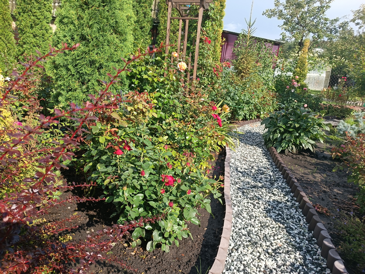 Вот собственно и все цветущие пока розы. Зато как красивы сейчас седумы! Просто восторг!