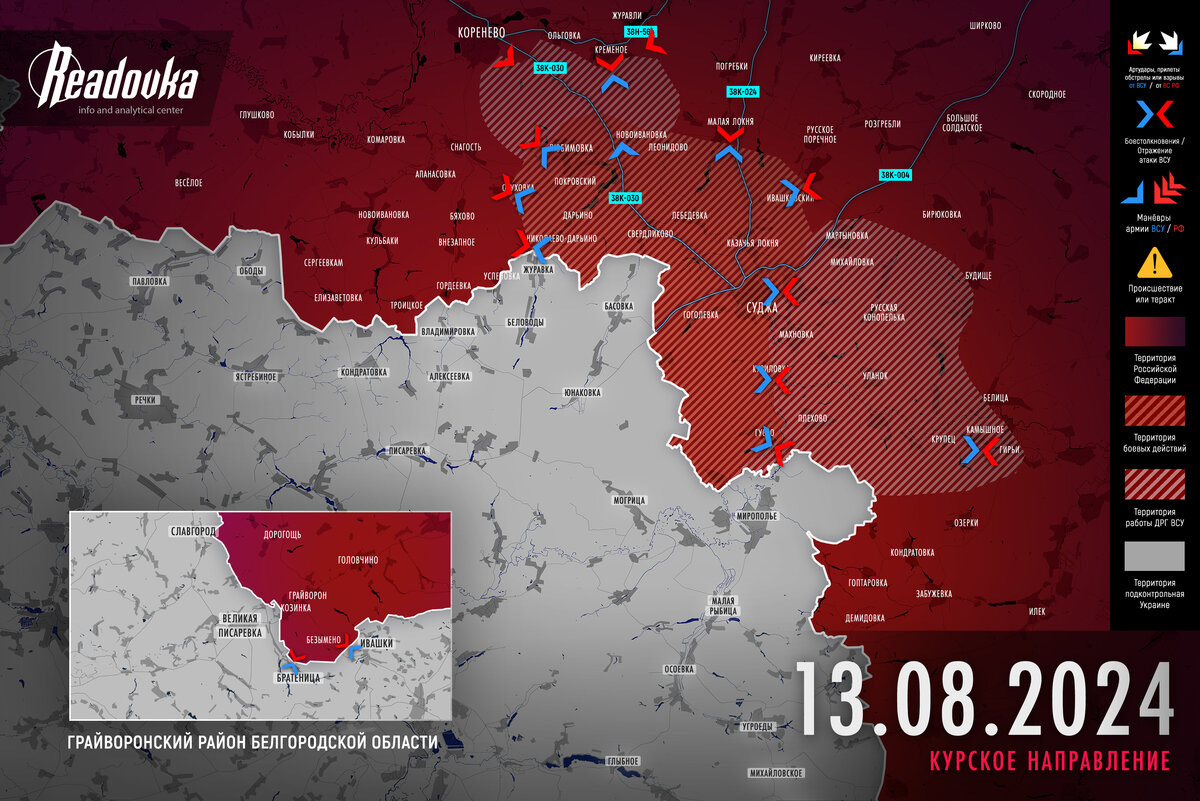 Границы зоны нападения ВСУ обозначились, противник пытается разжечь очаг на Белгородчине – сводка Readovka на утро 13 августа
