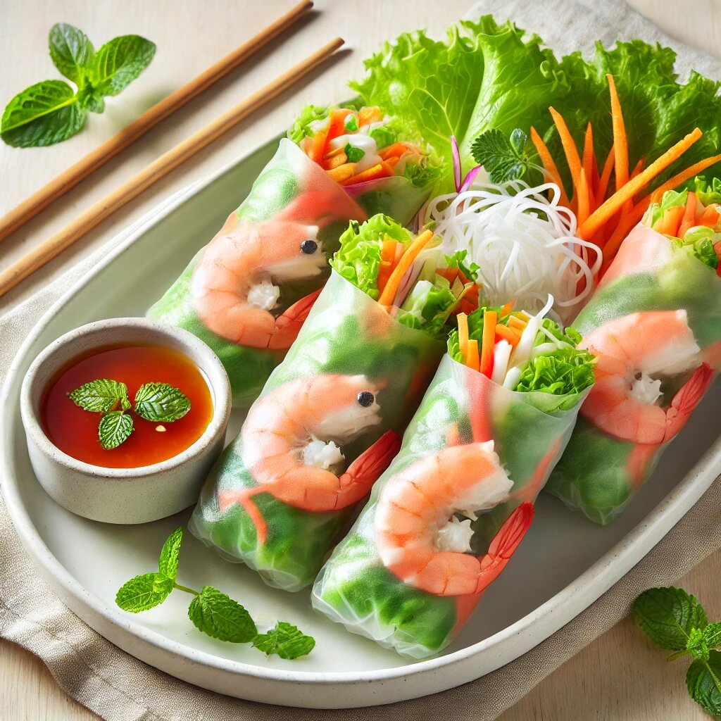 Спринг роллы с креветками имеют глубокие корни в азиатской кухне, особенно в Вьетнаме и Китае. Их происхождение связано с традицией приготовления легких, свежих закусок, которые могли бы освежить в жаркую погоду и насытить, не утяжеляя организм. Во Вьетнаме спринг роллы, известные как "gỏi cuốn" (или "nem cuốn"), представляют собой свежие рулетики, завернутые в рисовую бумагу с разнообразной начинкой, включая креветки, свинину, травы, вермишель и овощи. Они обычно подаются холодными и погружаются в различные соусы, такие как арахисовый соус или соус из рыбного соуса. В Китае, особенно на юге, можно встретить аналогичные роллы, называемые "春卷" (chūn juǎn) или "весенние роллы". Однако китайские весенние роллы чаще всего жарятся, и начинка может варьироваться от мяса до овощей. Тем не менее, в некоторых регионах существуют и свежие версии роллов, напоминающие вьетнамские. Спринг роллы приобрели популярность по всему миру благодаря их универсальности и возможности адаптировать ингредиенты