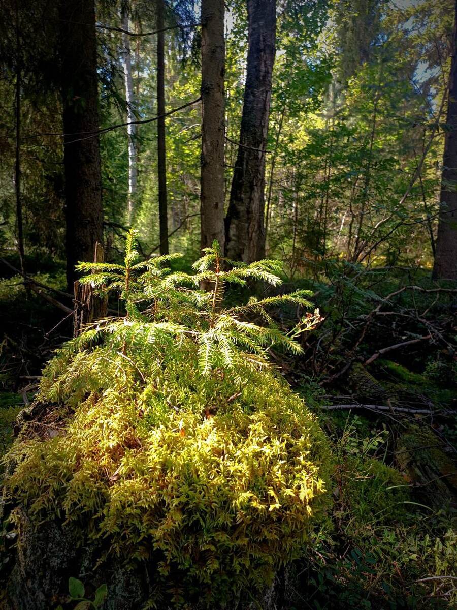 Вдруг с правой стороны нашей условной дороги мы встречаем настоящее природное чудо – огромный выворотень, невероятно эстетично заросший мхом и прочей зеленью. Очень напоминает модные нынче фитостены, но ни один человек не создаст композицию настолько гармоничной, как это смогла сделать Природа.