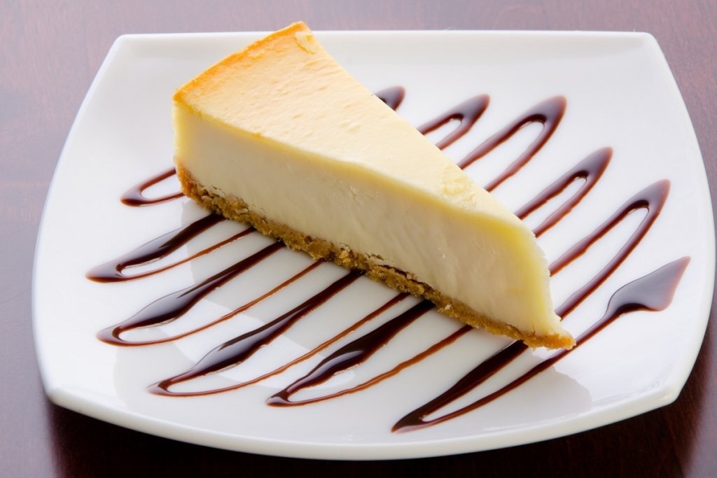 Поместить чизкейк в разогретую до 200 градусов духовку сперва на 10-15 минут. Затем уменьшить температуру до 110-120 градусов и довести чизкейк в духовке до готовности, около 1,5 часа.