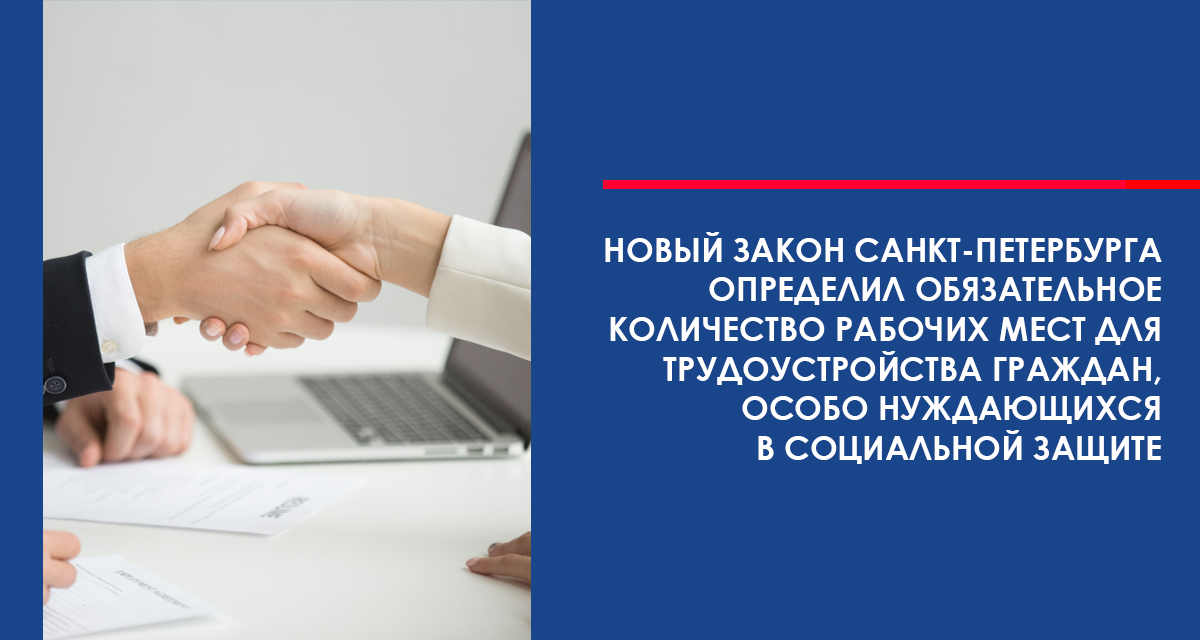 Новый закон Санкт-Петербурга определил количество рабочих мест для граждан, особо нуждающихся в социальной защите