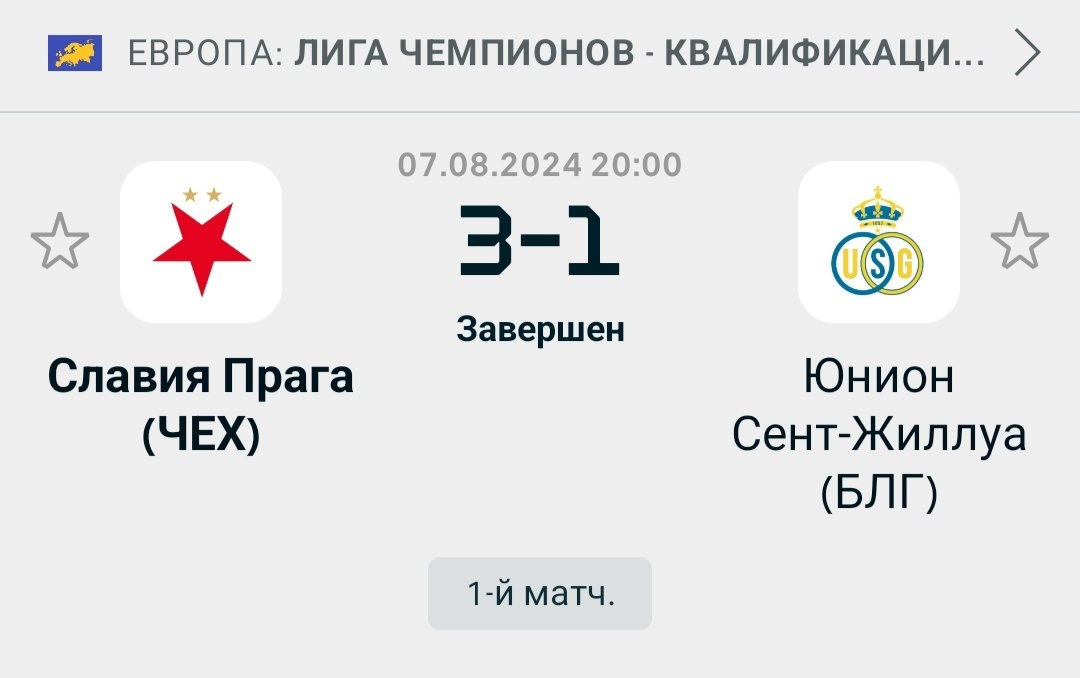 Всем привет. Вчера в Чехии в городе Прага прошёл матч между командами "Славия" и "Юнион". Команда из Бельгии, против команды из Чехии. Оба клуба уже имеют официальную игровую практику в нынешнем сезоне. Поэтому и"Славия", и "Юнион" готовились к очному матчу квалификации Лиги чемпионов через свой чемпионат. В Чехии прошло уже три тура. "Славия" один раз сыграла вничью и два раза выиграла. Чемпионат Бельгии взял старт только на прошлых выходных. По сути "Юнион" провёл только один официальный матч не считая игр на европейской арене. В первом туре команда обыграла "Беерсхот" со счётом 3:1. Вчера Юнион отправился на выезд в Чехию. Город "Прага", стадион "Фортуна Арена". "Славия" в этом матче явный фаворит. Команда играет дома, плюс провела больше официальных матчей, чем соперник. При этом был один фактор в пользу "Юниона". У Славии большие потери по составу. В данном поединке в составе чешской команды не играло порядка 7 футболистов. У Юниона конечно тоже есть ребята, которые находятся в ла