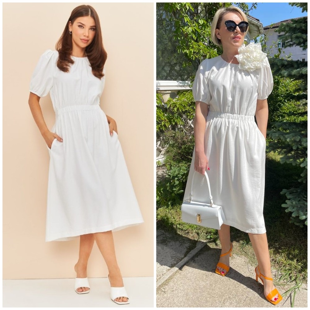 Здравствуйте, дорогие читатели! Меня зовут Ирина, я - стилист, и на этом канале показываю одежду и аксессуары с Wildberries такими, как они есть, то есть, из серии "ожидание/реальность". Мои параметры: рост 169 см, вес 67 кг, 94-74-100 ✅Основной канал: Стильно - не значит дорого! Ставьте лайк в поддержку канала, и давайте смотреть на мою сегодняшнюю покупку. Заказала на ВБ одну модель платья в двух цветах, уж очень оно универсальное, простое, но при этом стильное. Обратите внимание, как простые детали делают из этого повседневного платья нарядное. Можно носить и в городе, и на отдыхе (идеи моих образов в разных стилях смотрите на видео ниже). Сзади у платья имеется актуальный разрез, застежек нет. Материал платья легкий, дышащий, комфортный. Подчеркнутая линия талии формирует красивый силуэт "песочные часы", поэтому смело можно обойтись без ремня. Рукава достаточно свободные, универсальная длина миди. Носить не обязательно с каблуком, кеды и сандалии тоже подойдут к обеим моделям. Разм