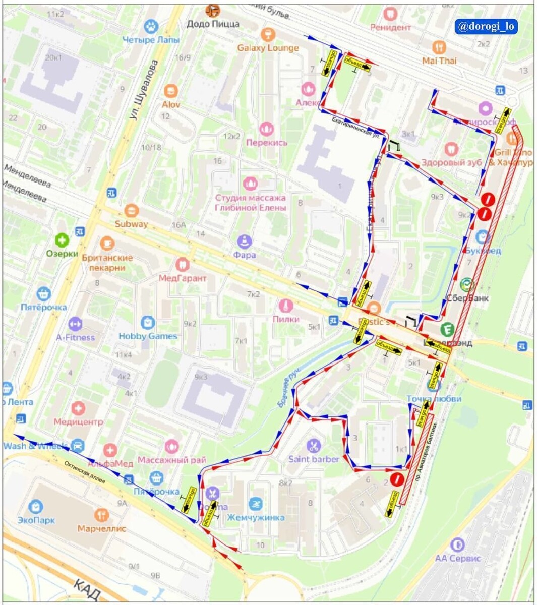 Эти изменения необходимы для перекладки инженерных сетей под будущую улицу между круговым перекрестком и Ручьевским проспектом. Дорожный комитет Ленинградской области приносит извинения за временные неудобства.