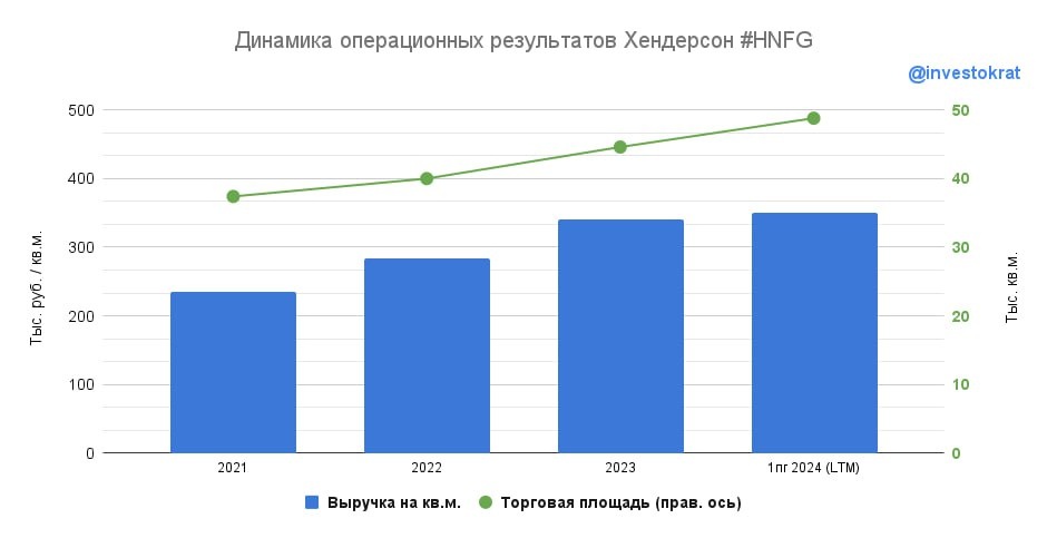 📈 Торговая площадь увеличилась на 19% г/г, а выручка в пересчете на квадратный метр на 11%. Бизнес не просто растет в масштабах за счет открытия новых магазинов, но и параллельно увеличивает их эффективность!