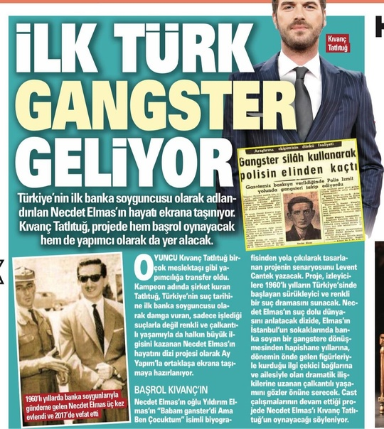 Кыванч Татлытуг, одно из самых известных имен турецкого кино, подписывает новый проект. Как известно, именитый актер стал сопродюсером нового сериала о жизни первого в Турции гангстера Недждета Эльмаса.