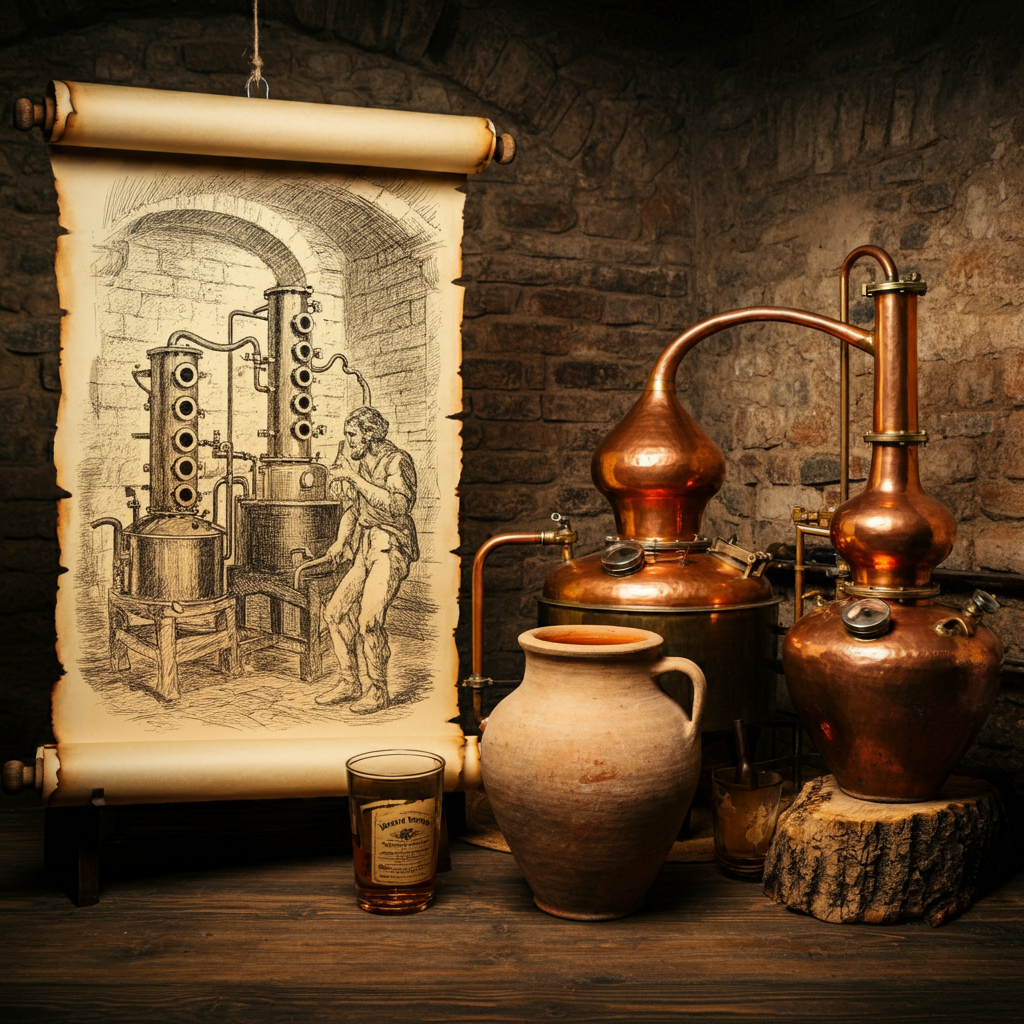 Искусство дистилляции, возникшее около 5000 лет назад, прошло долгий путь от простых древних процессов до сложных современных технологий. Самые ранние упоминания о дистилляции можно найти в «Эпопее о Гильгамеше», написанной в Древней Месопотамии около 3000 года до н. э. В ней описывается процесс извлечения эфирных масел из растений с использованием кипящей воды и овечьей шкуры, которая действовала как примитивный конденсатор. Этот метод был предшественником современных техник дистилляции, используемых для получения спиртов и других жидкостей. К 500 году до н. э. дистилляция стала распространенным процессом в Таксиле, на территории современной северо-западной части Пакистана. Здесь археологи обнаружили идеально сохранившуюся терракотовую систему дистилляции, где пар, поднимающийся от кипящей воды, проходил через слой ферментированных зерен, захватывая алкогольные пары. Эти знания распространялись как на Восток, так и на Запад, и уже к 350 году до н. э. упоминания о дистилляции появили
