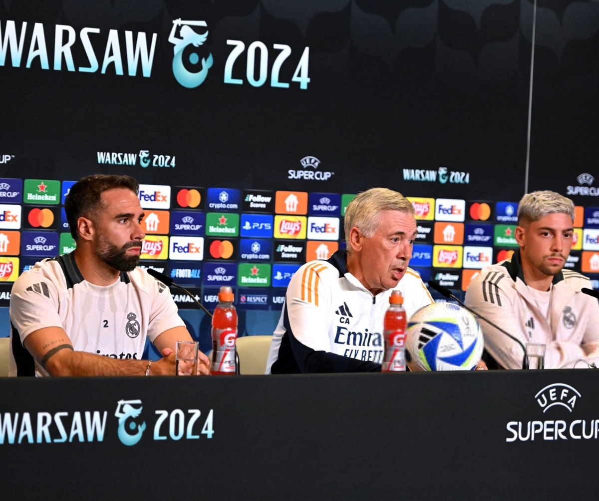 В преддверии игры Карло Анчелотти выступил на пресс-конференции. Карвахаль и Вальверде составили тренеру компанию.