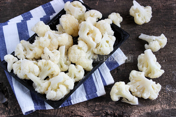 Неправильно замороженная цветная капуста со временем темнеет и горчит. Как этого избежать? Соцветия перед заморозкой нужно бланшировать — проварить короткое время. А чтобы цветная капуста осталась белоснежной, не забудьте добавить немного лимонной кислоты. Если соблюдать все правила, то заготовку можно хранить в морозильной камере 6-7 месяцев, это позволит вам сделать запасы до следующего урожая. Капусту разобрать на соцветия. Можно крупнее, можно мельче — все зависит от того, какие блюда потом планируете готовить. Залить 2 литрами холодной воды и добавить 0,5 ст. л. соли. Оставить на полчаса, пусть постоит — это делается на случай, если между соцветиями спрятались насекомые. Вылить воду, промыть капусту. В кастрюле вскипятить 2 л воды (без соли!). Добавить лимонную кислоту на кончике ножа, чтобы капуста не потемнела, осталась белоснежной при заморозке. Бросить соцветия в воду и варить не более 1 минуты — за счет такого бланширования овощи сохранят свой вкус. Отбросить капусту на дуршл