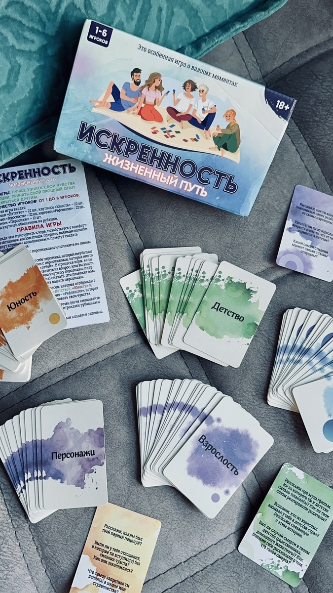 жизненный путь Привет, крошки🤗 Сегодня показываю и рассказываю вам о мини-настолке, которую купила для домашнего свидания с мужем и в которую я надеюсь сыграть с ним в недалеком будущем😅 Вообще, эта игра рассчитана на 👥1-6 игроков и строго 🔞18+ Под второй пункт мы давно проходим, а вот первый… Какая бы общительная и открытая я не была, играть в это я пока ни с кем, кроме Ф, не готова🙄 Почему? Потому что тут в коробочке собрано более 60 карточек с вопросами про 👶🏻Детство 👧🏻Юность 👩🏻🦱Взрослость + еще порядка 40 вопросов на рефлексию по ним👀 И мне кажется это таким личным, что разделить подобные беседы можно только с самыми-самымиблизкими🩷 Знаю, выводы делать еще рано, да и в отзывах пишут, что все не так уж «страшно» там во время беседы, а, возможно, я слишком серьезно подхожу к ней, но все же - Один из авторов игры – психолог🧐, который утверждает, что вопросы, спрятанные внутри, позволят игрокам проанализировать свое прошлое и настоящее, найти триггеры, мешающие двигать