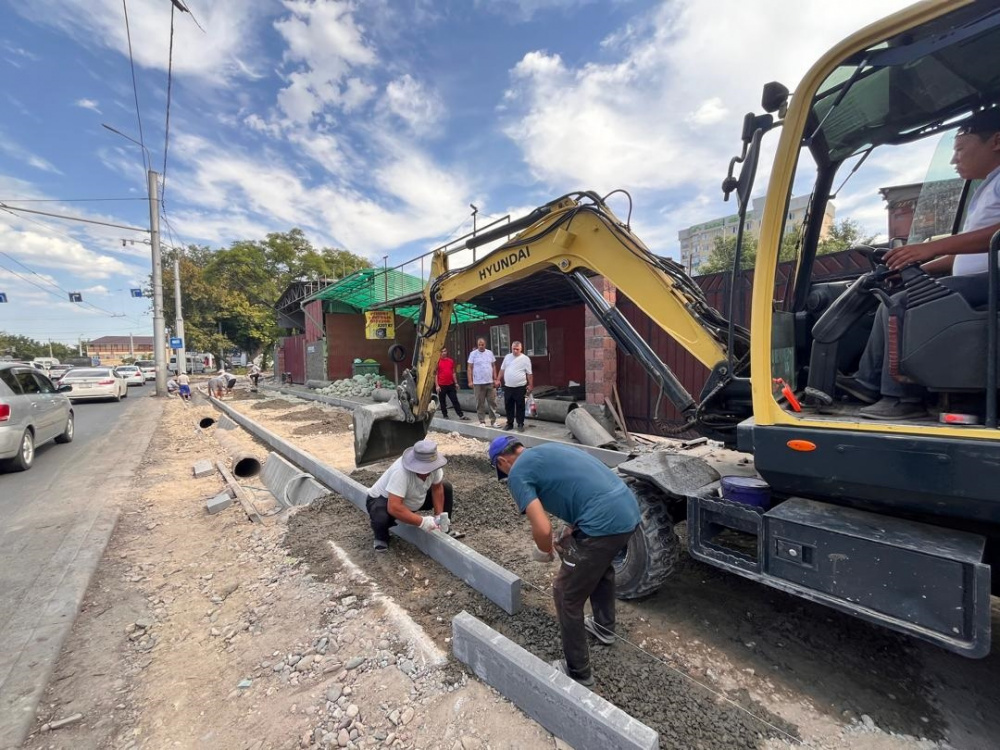 Бишкек шаарындагы Жибек Жолу проспектиндеги жаңы тротуар куруу иштери башталды. Махатма Ганди жана Ростов көчөлөрүнүн ортосундагы болукто асфальттар алмаштыруу, бордюрлар орнотуу жана ирригациялык системанын акыркы куруу иштери жургузулуудо. • Бишкек Жибек Жолу проспектисиндеги тротуарды жаңылоодо, бул шаардын инфраструктурасын жакшыртат. • Махатма Ганди менен Ростовская көчөлөрүнүн ортосундагы тилкеде оңдоо иштери башталды. • Түштүк тарапта негизги иштер бүткөрүлдү, анын ичинде эски асфальт төшөө, бордюрларды орнотуу жана ирригациялык система. • Жолдун түндүк тарабында эски асфальттарды түшүрүү жана бордюрларды орнотууга даярдоо иштери уланууда. • Жакында жаңы асфальт төшөлүшү күтүлүүдө, бул жөө жүргүнчүлөрдүн ыңгайлуулугун жакшыртат.