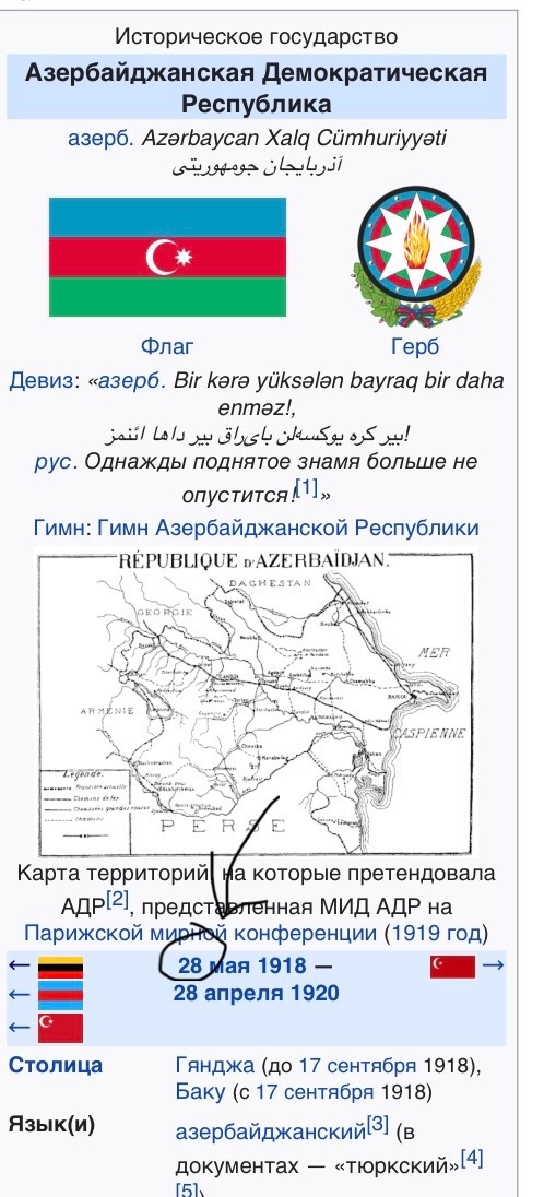 Всем привет! Давненько я не делал статьи, поэтому решил вернуться на дзен и рассказать вам много историй. Одна из них будет про Азербайджан и Армению в 1918. Как многие утверждают всякие, те же самые мапперы, либо политики в ТГ, факт что в 1918 году, после распада ЗДФР, Армения входила один день в состав Азербайджана. Так что ж, давайте сегодня это все и разберем, правда ли это или нет? Начинаем да даже, та же самая Википедия, признаёт что такой фигни не было, ей конечно не всегда стоит доверять, но в этом случае она права. Ну да ладно, пока что на этом статья подходит к концу, пишите в комментарии, о чем мне написать еще статью.