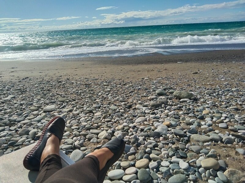 "Первый раз в октябре в Абхазию попала в 2018-м, абсолютно спонтанно. Купила горящий тур, за очень смешные деньги. Решили с мужем, что сгоняем просто на погулять и развеяться. О пляже и море даже не помышляли (тур был с 16 октября на 8 ночей). Приехали и офигели! На улице жарища, море теплое, Афон почти безлюдный. Как же мы тогда кайфанули! Правда с одеждой накладочка вышла. Мы приехали без летнего гардеробчика. Благо я в последний момент перед отъездом, в надежде на Кындыг, сунула в чемодан купальник. Ну, и из летнего, по паре футболок у нас было. Помню, рассекала по Афону в "домашних" страшненьких легинсах, подтянув их до колен на манер шорт😅. С тех пор, в Абхазию в октябре, это святое! С одежкой больше не промахиваюсь. Правда в прошлом году гулять по вечерам в утепленной безрукавке мне показалось холодновато (может старею?😉). В этом году, пожалуй, возьму что-то с рукавами". (© По жизни с улыбкой)