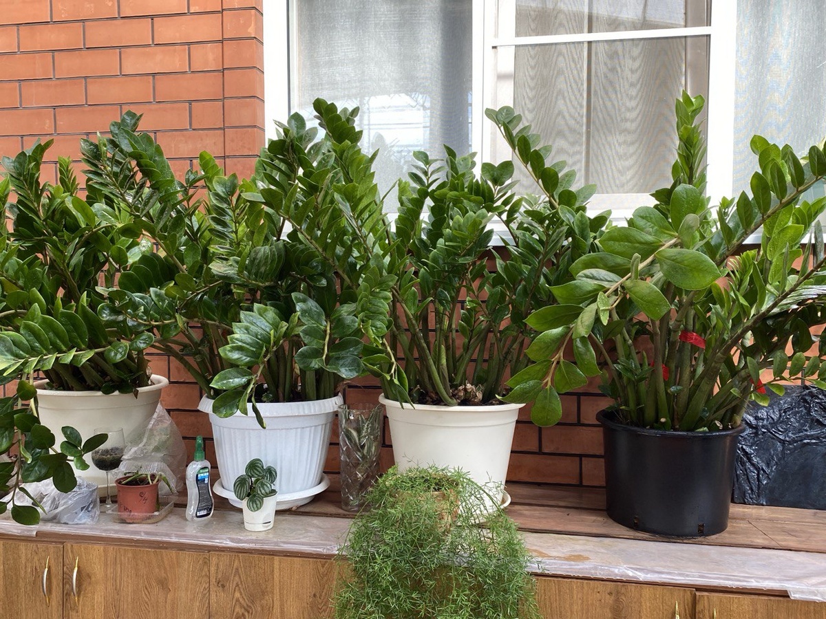 Сегодня я покажу сорта, которые есть у меня, и коротко расскажу о них. Первый замиокулькас, который у меня появился, был замиокулькас замиелистный (Zamioculcas zamiifolia). Из маленького куста за 15-20 лет он вырос в целый замиокулькасовый лес. Дарено-передарено (и даже уже один продан) несчетное количество кустов. Укореняла его самыми разными способами. Вывод один: он очень любит жизнь, и убить его трудно)) . Мне кажется, это самый неприхотливый и быстро растущий замик. Об уходе за ним я уже писала очень много, повторяться не буду. Следующими у меня появились Равен и Зензи. Равен (Black raven, черный ворон) удивительно элегантен и смотрится как-то брутально на белом фоне. А под фитолампой - это, вообще, что-то космическое! Он удивляет своими ярко-зелеными молодыми листьями, которые потом постепенно темнеют. У меня он очень медленно рос, и поэтому я срезала ему почти все листья и укоренила их. Сейчас подсадила их обратно, к старому кусту. Теперь там много клубней, и появляю