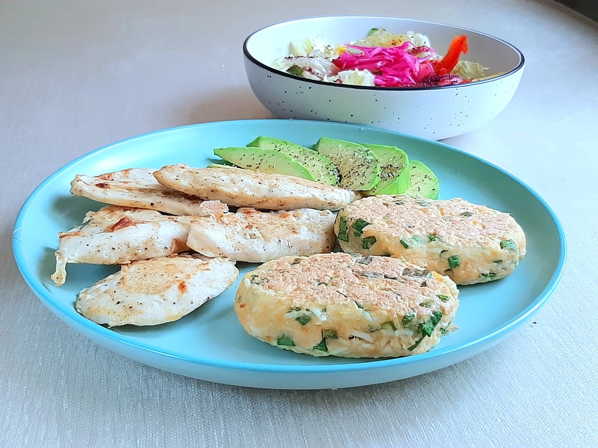 - Добавляем сырое яйцо, соль, мелко нарезанный зелёный лук, муку.