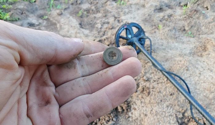 Всем привет. Продолжаю обследовать котлован, что обнаружил пару тройку недель назад. До этого там были находки довольно приятные. В этот раз припозднился - были проливные дожди. Итак, первой находкой там была медная пуговица, как предполагаю от подштанников: И второй находка была пуговица, как предполагаю - мундирная: Лицевая сторона была никакой, по этому службу не определить: Это поинтереснее - окуляр от оптического прибора. Явно старинный, так как кольцо - медное: Бинокль или подзорная труба. А потом вылетела монетка - 2 копейки серебром: Так-же было маленько металла: Жалко, что основную верхнюю часть грунта вывезли. Наверняка самый "жир" там. Хотя, в принципе место мне сказали. Вроде как планировать будут осенью. Не все еще потеряно. Ну и сообщаю, что есть видеоверсия этой статьи, в которой показаны все находки. Если интересно, то просто нажмите - сюда. Материал был ранее опубликован в моем блоге ". Поиск интересного с Хрусталевым". Там много чего есть интересного. Здесь и трети не