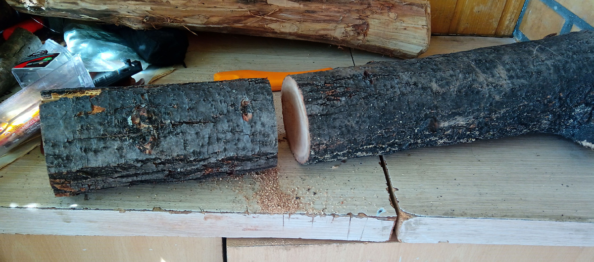 Текст целиком и полностью написан исключительно автором данного блога. Все изделия, приведённые рисунки (кроме отдельно оговоренных) и фотографии выполнены автором. Пост не содержит никакой запрещенной, или ограниченного пользования, информации. Пост касается исключительно описания процесса работы с деревом и изготовления из него различных полезных предметов. Данный пост является изложением исключительно собственного мнения и опыта работы, не является услугами по просветительской деятельности и не подлежит лицензированию в соответствии с Федеральным законом «Об образовании». Монетизация на моём канале отключена. С рекламы, которая здесь появляется, никакого гешефта я не имею. Решил я сделать в общем-то бесполезную вещь – резную деревянную кружку. Но не просто кружку, а такую, чтобы было сразу понятно, что резали её вручную, а не на токарном станке. Отпиливаю кусочек липового поленца. Делаю ещё несколько спилов для формирования ручки-крючка. Немного обрабатываю ручку, чтобы освободить м