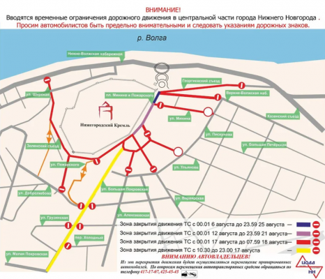 Будут перекрыты площадь Минина и Пожарского, частично улицы Минина, Ульянова, Варварская, Алексеевская, а также Георгиевский и Зеленский съезды.