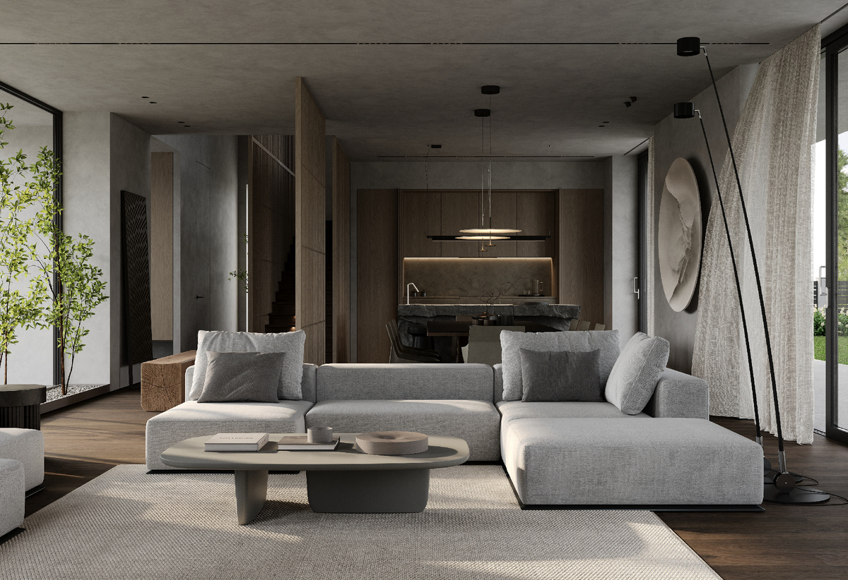 К нам обратилась молодая пара с двумя детьми. Они отдают предпочтения современному стилю и еще хотели, чтобы цветовая гамма была холодная. И снова новый вызов для всей команды. Как учесть пожелание заказчика «создать продолжающий природу интерьер, собрать холодные оттенки и объединить это все в современном направлении», чтобы при этом пространство было уютным и семейным? А это не так то просто.