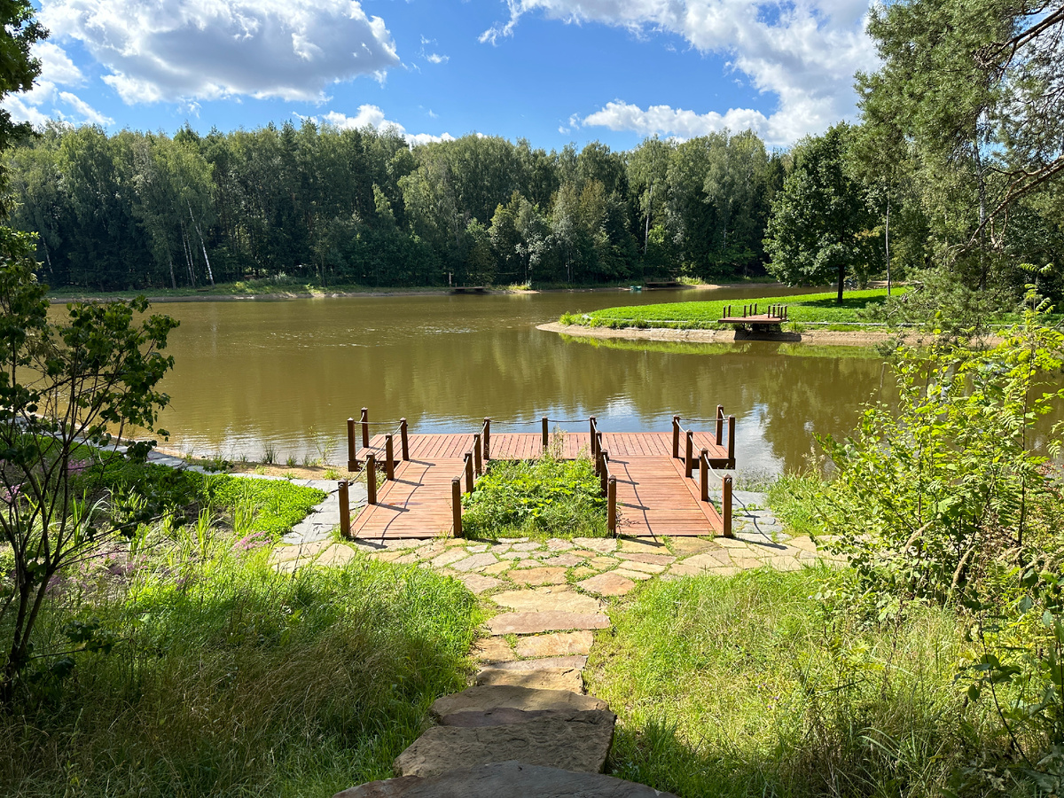 Сегодня решили съездить на разведку в новый парк "Ближняя дача", что в Мытищинском районе недалеко от метро Алтуфьево. Парк пока строится, но уже доступен для прогулок. Официальное открытие обещают только в следующем году. На въезде нас встретили гостеприимные охранники, спросили нет ли с нами домашних животных, и любезно проводили до парковки, указав куда встать. Парковка достаточно большая, и что самое приятное бесплатная. В парке запрещено находится с любого размера собаками, что не может не радовать, можно спокойно погулять с маленькими ребенком. Парк оборудован причалами для платной рыбалки. Рыбакам просто раздолье, и парковка есть, и от Москвы рукой подать. Стоимость путевки 5000 рублей для мужчины, женщины и дети с ним бесплатно. Рыбалка возможна с 8 утра до 8 вечера. Есть прокат снасти, удочки от 1500 рублей, сачки от 500. Везде дорожки из природного камня, гулять комфортно. Великое множество кормушек для птиц и белок, чуть ли не на каждом дереве. Работы по бл