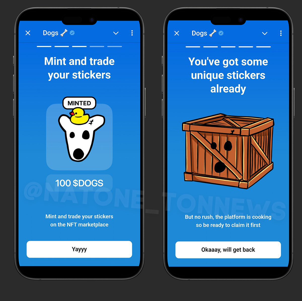 Смесь мем коинов, NFT и индивидуальных стикеров, которые будут иметь свою ценность. Можно будет создавать и продавать Нфт за $dogs