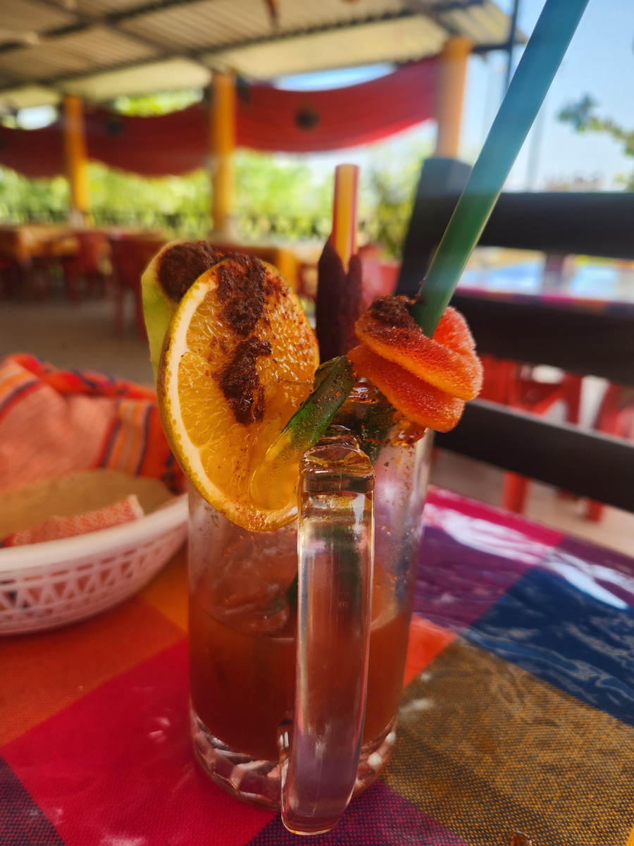 Этот напиток сводит с ума. Называется он мичелладос и состоит в основном из пива. Не понимаю в чем его секрет, но на вкус он и острый, и сладкий и кислый. И именно это сочетание вкуса включает все вкусовые рецепторы. Только представьте, я очень мало пью воды, чая. В основном за день выпиваю пару стаканчики кофе, но мичелладос за раз могу выпить литр. Ха-ха, хорошо, что мы в Мексике лишь временно. Иначе, мне кажется, даже в таком случае мой идеальный вес бы пострадал. В целом рецепт мичелладоса не так сложен. Это пиво, фруктовые добавки и конечно же острая сальса и сверху каемка из соли, перца и соуса чаммой. Для украшения добавляют или цитрус сверху или мармеладки. #Мексика #мексиканскаяеда #путешествие #коктейль