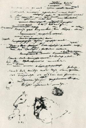 Что тут бросается в глаза? Первое – неправильно написанная фамилия автора – «Ершев», - вместо «Ершов». Странно, представляя нового автора, которого журнал хвалит, - сразу же допускать ошибку в фамилии этого автора! Это – так же, как например, Пушкина бы назвали – «господин Пушнин», или господин «Пашкин»!». Тем более что там даже и не «ё», а «е». Возможно, эту «е» надо было читать, как «ё», но, поскольку всё же написана буква «е», то читается как «ЕРШЕВ», - с перестановкой ударения на первый слог, поскольку ударение на втором тут для русского уха неестественно. А перед изменённой фамилией стоит буковка «г». Конечно, читателю следует догадаться, что это – «господин». Но если читать вслух, то можно произнести одну «г», а следом фамилию «Ершев», и получится у нас: «гершев». Что-то еврейское. Да, кстати, отчество первого исследователя проблемы авторства «Конька-Горбунка», у которого старик Лацис украл идею, - «Гершевич», - Вадим Гершевич Перельмутер. Есть такое еврейское имя – «Герш», которое означает – «Олень». Так что по-русски эта фамилия будет – «Оленин». Если бы тогда мужья брали фамилии своих жён, то Пушкин, захоти он этого, мог бы стать Олениным, если бы Анна Алексеевна Оленина вышла за него замуж. Но, думаю, что он бы не стал менять свою фамилию ни в каком случае – она слишком ему шла, была древней дворянской, и, к тому же, поминутно встречалась в «Истории» Карамзина. Тем не менее, оленем он себя мог ощущать, поскольку это рогатое существо более всего соотносится с обманутым мужем. Я не хочу уходить в сторону и толковать о нравственности его жены. Пушкин мог себе это представлять гипотетически. Вспомним его лицо в образе лошади, у которой на темени что-то прорезывается, похожее на рога.